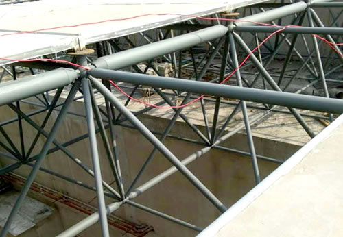 網(wǎng)架加工成型后對焊縫質(zhì)量應(yīng)進行超聲波探傷檢驗,如有不合格產(chǎn)品應(yīng)立即進行返工。網(wǎng)架經(jīng)過檢驗校正后采取拋丸除銹方法...