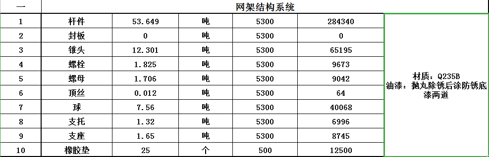 1.螺栓球網(wǎng)架結(jié)構(gòu)材料系統(tǒng)報(bào)價(jià)